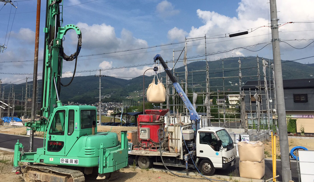 完成した地盤は陽の当たらない場所であっても、しっかりとした安心と信頼の土台がいつまでも光りかがやくよう地盤のエキスパートとして、ずっと縁の下で支え続けます。